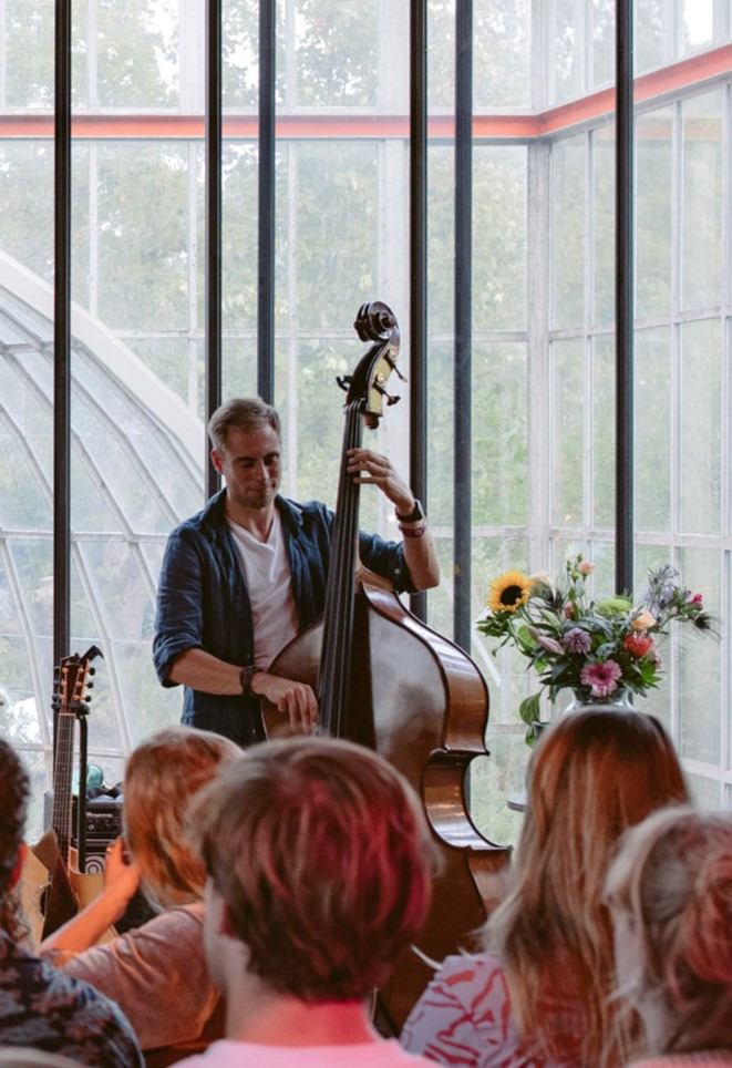 Met veel plezier sta ik ruim tachtig keer per jaar op het podium. Met mijn eigen projecten of als sessiemuzikant. Van theatertoernees tot festivals en van business events tot bruiloften: ik heb ruim vijftien jaar podiumervaring en vind het altijd leuk op nieuwe plekken en met nieuwe mensen te spelen! Lees hier meer over mijn optredens. Ook ben ik vaak op jamsessies te vinden, zie hier mijn overzicht van alle sessies in Utrecht. Ook beheer ik Finefleur Deluxe, een boekingsbureau voor lokale jazz en wereldmuziek.